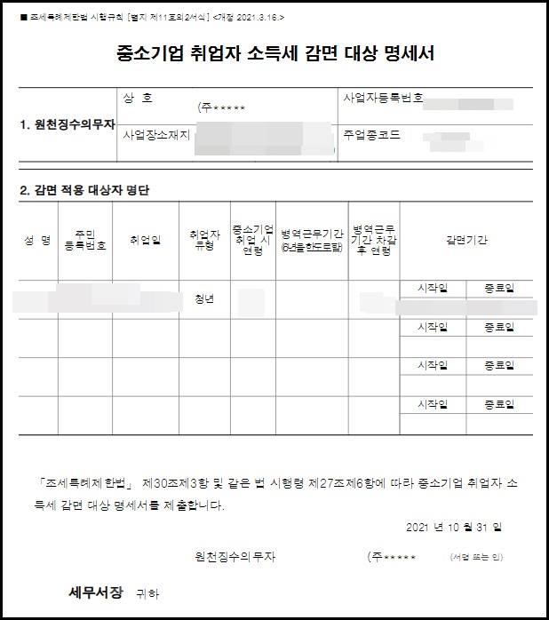 2024.01.28 - [각종 정보/기타] - 중소기업취업자 소득세 감면 대상 및 명세서 확인
