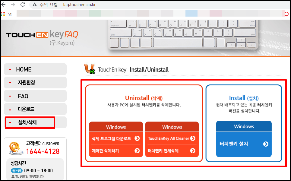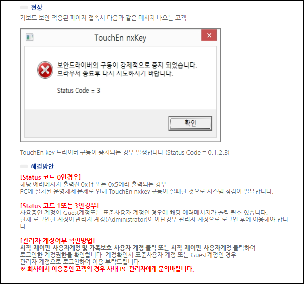 TouchEn Key(터치엔키) 오류 발생시에도 동일한 방법으로 해주면 될 듯합니다.