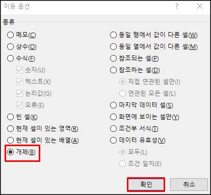 종류 중 '개체'를 선택한 후 확인을 눌러주세요.