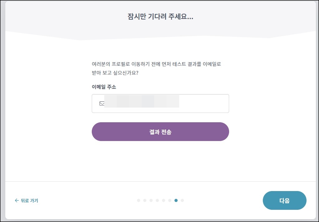 메일 주소를 입력하고 결과 전송을 누르면 돼요.