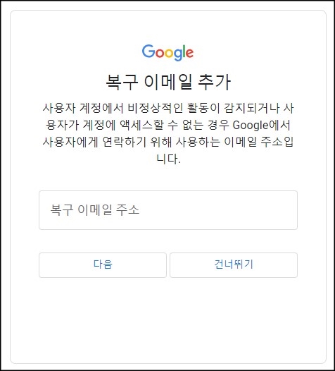 7. 복구 이메일 주소는 선택사항입니다.