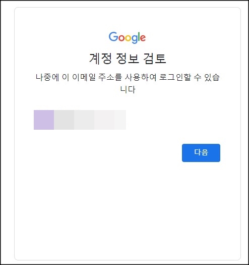 9. 입력한 이름과 메일 주소가 나오는데 확인 후 다음을 눌러주세요.