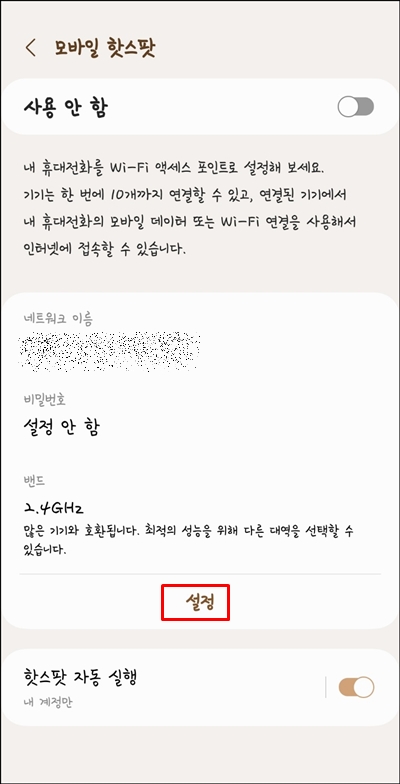 제가 사용하는 핸드폰은 삼성 갤럭시 S23울트라로 최근 모바일 핫스팟 비밀번호를 설정해 주었습니다.