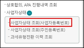 2. 사업자상태 조회(사업자등록번호)를 눌러주세요.