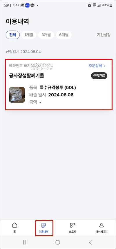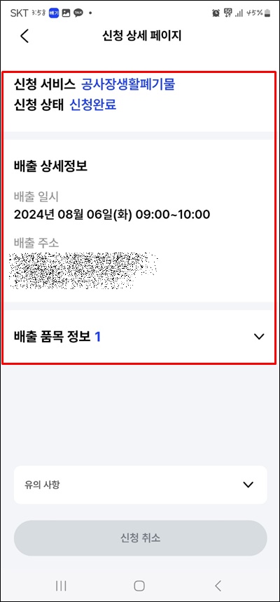폐기물 배출 신청이 아주 쉽게 완료되었습니다.