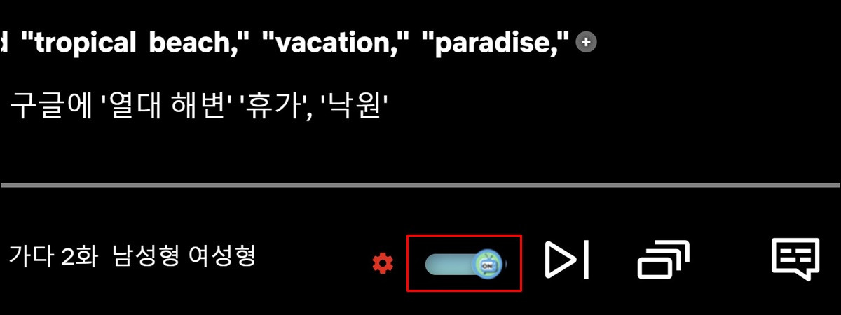 영어 영상을 선택해서인지 영상 재생 시 자동으로 영어자막과 한국어 자막이 나왔습니다.