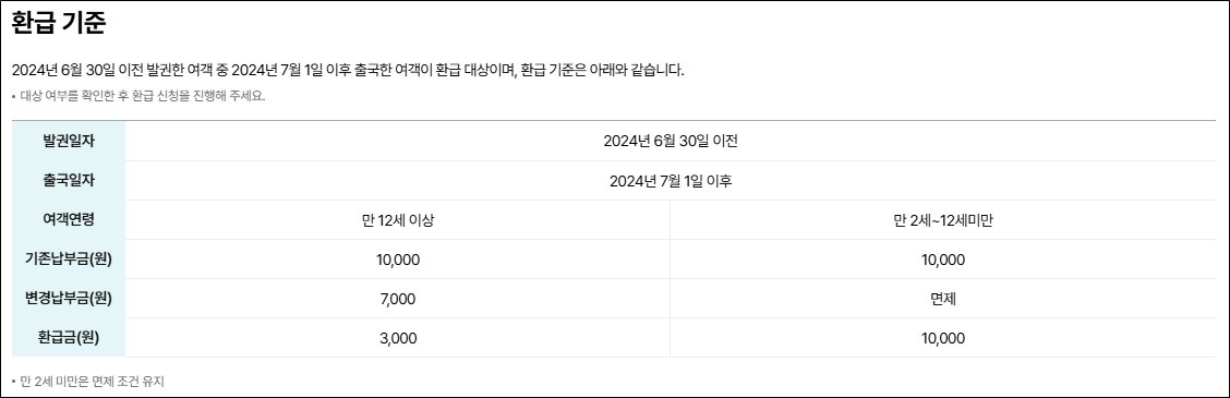 대상자는 24년 6월 30일 이전 발권한 여객 중 24년 7월 이후 출국한 여객이 환급 대상입니다.