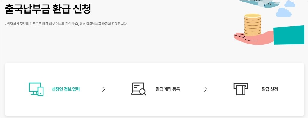 출국납부금 환급 신청은 총 3단계를 거치게 됩니다.