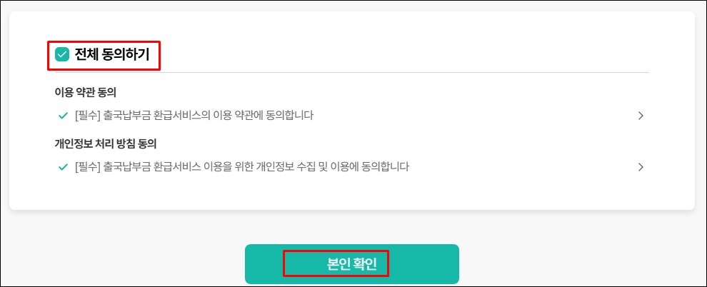 이용약관 및 개인정보 처리 방침에 동의 후 [본인 확인]을 누르면 됩니다.